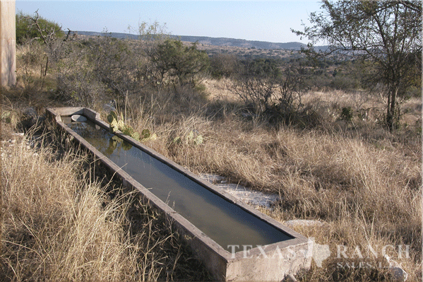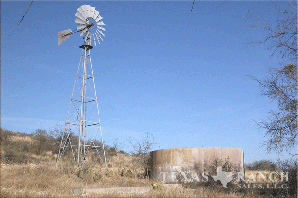 is one windmill with a large concrete storage tank for wildlife watering; and the home is serviced by a submersible water well.