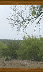 brush, lots of big trees and red sandy soil. Portions of the ranch have been cleared of brush to allow seed producing grasses to grow in an effort to enhance quail habitat.