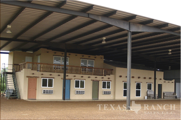 The ranch has two excellent ranch houses. On the west side, a Pueblo Indian style lodge located under a 128’ X 60’ open metal hanger style barn. This beautiful